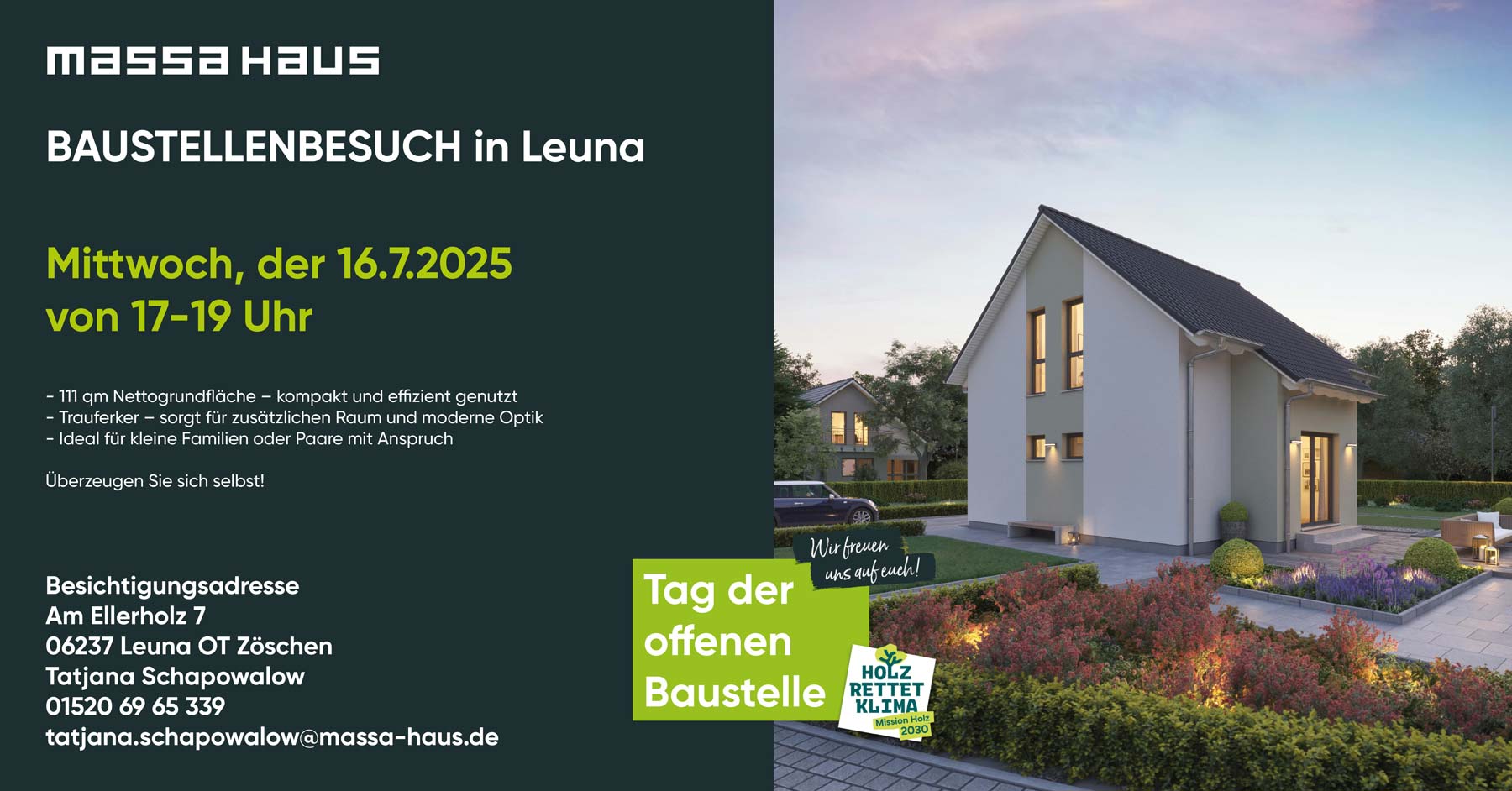 Wir sind 7-Tage die Woche für euch da. Unsere Musterhäuser könnt ihr von Montag bis Sonntag besuchen.
