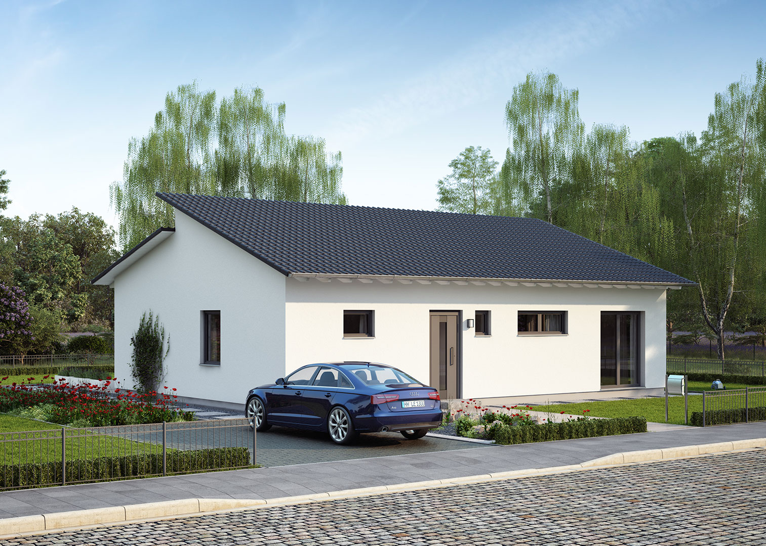 Der ComfortStyle 10.02 P ist ein Bungalow mit Walmdach und einer Wohnfläche von 108 m². Er ist klar und geradlinig gestaltet und bietet Familien viel Raum, um ihre Wohnideen umzusetzen.