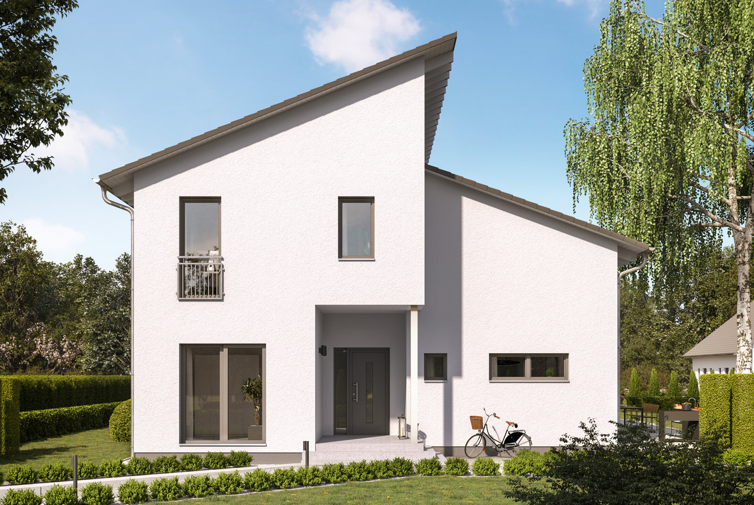 Die moderne Formensprache führt zu einem Haus mit architektonischem Anspruch und lässt ein angenehmes Raumklima und eine freundliche Atmosphäre entstehen.