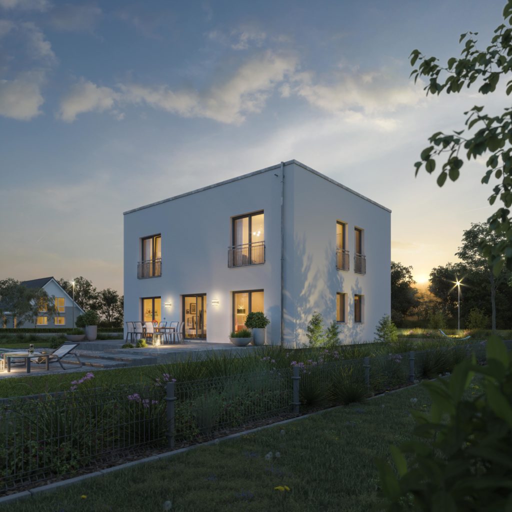 Der in Ulm erbaute, quadratisch angelegte Haustyp CUBE zeichnet sich durch eine spannende Architektursprache und klare Linienführung aus. Darüber hinaus ist das großzügige Einfamilienhaus ein echtes Raumwunder: Auf einer Nettogrundfläche ab ca. 233 m2 lassen sich nahezu alle Wohn- und Lebensvorstellungen verwirklichen. Unterstützt wird die freie Raumgestaltung durch eine mittig integrierte Treppe, die den offenen, ca. 68 m2 umfassenden Wohn-, Ess- und Küchenbereich auf raffinierte Weise gliedert. Parallel sorgen die zahlreichen bodentiefen Fenster für helles Wohlfühlwohnen.