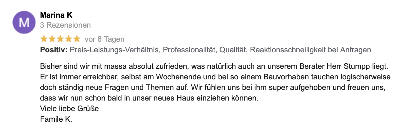 Seit über 8 Jahren begleite ich leidenschaftlich Bauherren auf dem Weg zu ihrem Fertighaus-Traum. Für mich steht ein offenes, ehrliches Miteinander im Mittelpunkt – nur so entsteht ein Zuhause, in dem Sie sich wirklich wohlfühlen.