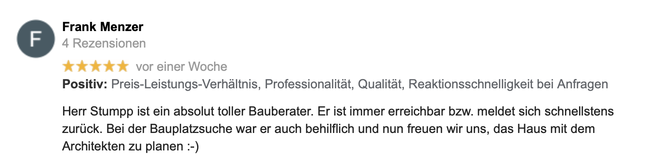 Falls Sie noch keinen Bauplatz haben, kein Problem: Mit meinem großen Netzwerk und langjähriger Erfahrung finden wir in der Regel innerhalb weniger Wochen das perfekte Grundstück für Ihr Traumhaus.