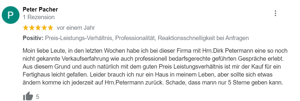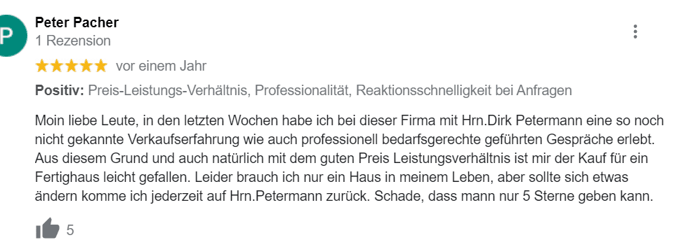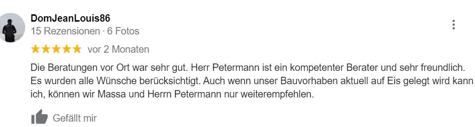 Ich heiße Dirk Petermann und bin seit vielen Jahren mit Herz und Seele Dein IHK zertifizierter Ansprechpartner für die hochwertigen und innovativen Häuser von massa haus. Mit mir kannst Du individuell planen und gemeinsam werden wir für Dich und / oder für Deine Familie das Ziel Eigenheim erreichen. Offenheit und Transparenz liegen mir am Herzen, deshalb darfst Du von mir eine ehrliche Beratung auf Augenhöhe erwarten. Überzeuge Dich selbst davon, weshalb ich der richtige Baupartner für Dich bin!