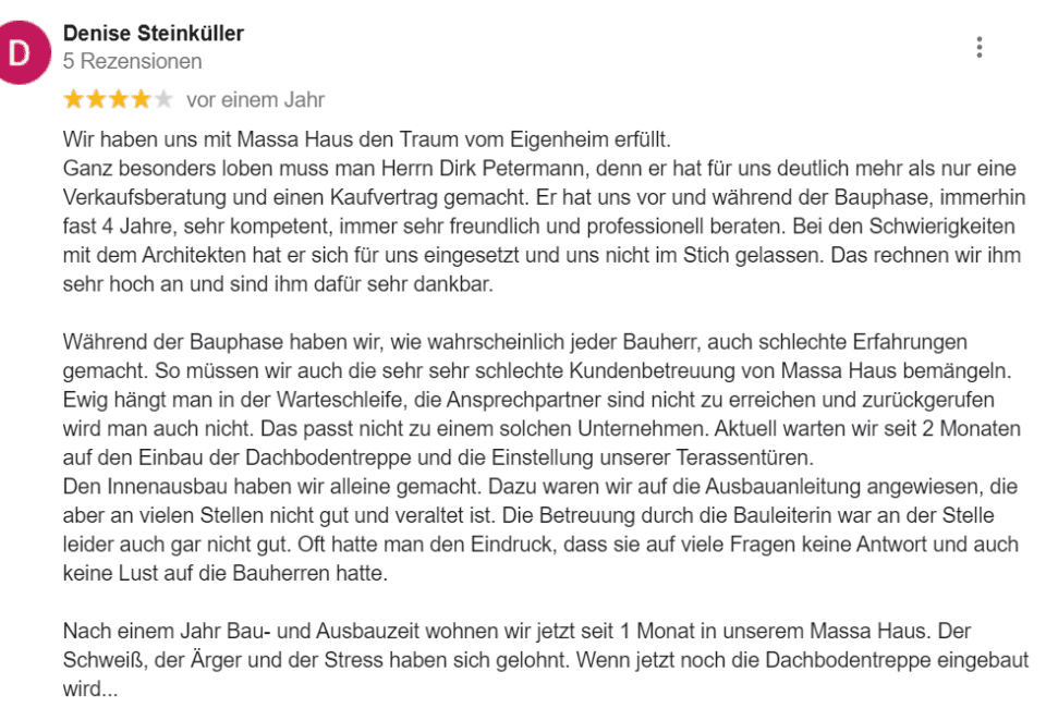 Ich kenne mich mit unseren mehr als 100 Haustypen aus und kann dir wertvolle Tipps zur Individualisierung geben. Die Expertise von uns massa haus Verkaufsberatern erstreckt sich nicht nur auf die Häuser selbst, sondern auch auf Themen wie Nachhaltigkeit, Finanzierung und Förderung.